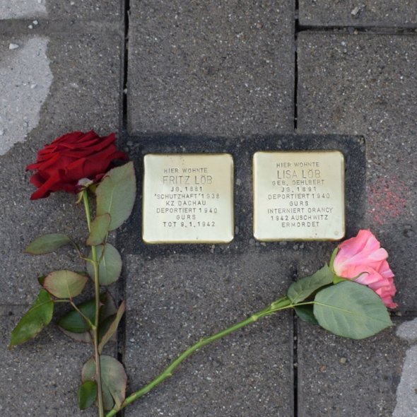 | Speyerer Straße 60 | Fritz Löb Lisa Löb | 1881-1942 1891-1942 | Haft KZ Dachau, Deportation Gurs Deportation Gurs | Else Wentz Stefan Veth |