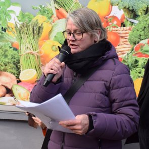 Bürgermeister Thorsten Leva begrüßte auf dem Vorplatz zur NEUEN PFORTE alle, die gekommen waren, um bei der fünften Stolpersteinverlegung dabei zu sein. „Erinnerungskultur ist kein Selbstzweck“, sagte er, „sie verpflichtet uns zu Wachsamkeit, zu Respekt, zu Empathie und zu einem aktiven Einsatz für Demokratie, Menschlichkeit und Vielfalt.“ Er bedankte sich ausdrücklich bei allen Spenderinnen und Spendern dieser neuen 16 Stolpersteine und begrüßte herzlich den Künstler und dessen Kollegen Frank-Matthias Mann. Er bedankte sich auch bei Lothar Distler, der regelmäßig alle Steine im Ort blank poliert, bei den Mitarbeitern des Bauhofs, die jede Verlegestelle vorbereitet hatten, bei den Schülern der IGS, die zusammen mit ihrem Geschichtslehrer Peter Werner und dem Schulleiter Jens Pellkofer gekommen waren, bei Uli und Ute Valnion, die die Verlegung musikalisch begleiteten, beim Ortschronisten Volker Schläfer als Mitglied des Stolperstein-Teams, bei Gunter Holzwarth, der die Verlegung organisierte, bei Dr. Christina Wolf, die zum Leben der NS-Opfer recherchierte, bei Michael Hemberger, der für die Fotos, Publikationen und die Öffentlichkeitsarbeit zuständig ist. Weiter hieß er die ehemalige Landtagsvizepräsidentin Hannelore Klamm, Verbandsbürgermeister Stefan Veth aus Dannstadt-Schauernheim und Irmgard Metzger, Zeitzeugin und Stifterin mehrerer Stolpersteine, willkommen.