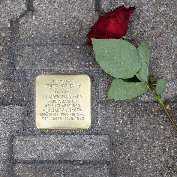 Bürgermeister Hans-Dieter Schneider spendete einen Stolperstein für Fritz Schalk. Er begründete dies mit der Würdigung mutigen, politischen Engagements. In der Speyerer Straße bekam Ferdinand Löb I einen Stolperstein, der als jüdischer Sozialdemokrat im Gemeinderat von den Nazis verfolgt und schließlich ermordet wurde. Diesen Stein stiftete Volker Schläfer, der auch Mitglied des Historischen Vereins ist.