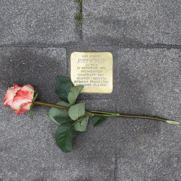 In der Eckenerstraße wohnte Josef Köhler, der als SPD-Mitglied 1933 in Schutzhaft genommen wurde. Im Lager Neustadt wurden diese politischen Häftlinge von den Nazis misshandelt und gequält. Den Stolperstein stiftete sein Enkel Stefan Josef Köhler, der sich mit einer spontanen Ansprache an seinen Großvater erinnerte.